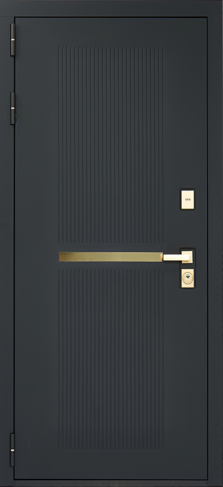 Цвет фурнитуры «квадратная золото». Цилиндр ключ-вертушка (производитель не регламентируется), регулируемый эксцентрик. Усиленная ручка. Удлиненный глазок.